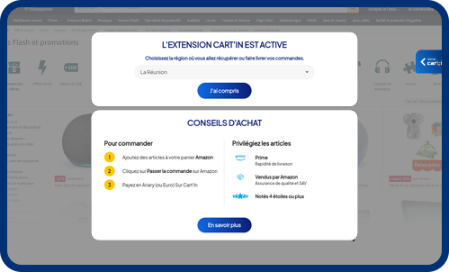 Visitez simplement amazon.fr pour parcourir les articles. Vous n'avez pas besoin d'un compte Amazon pour commander sur Cart'In