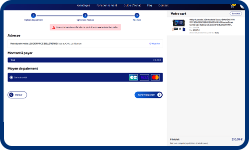 Payez directement sans sortir de l'application! Différentes modalités et moyens de paiement vous sont proposés pour faciliter votre achat.